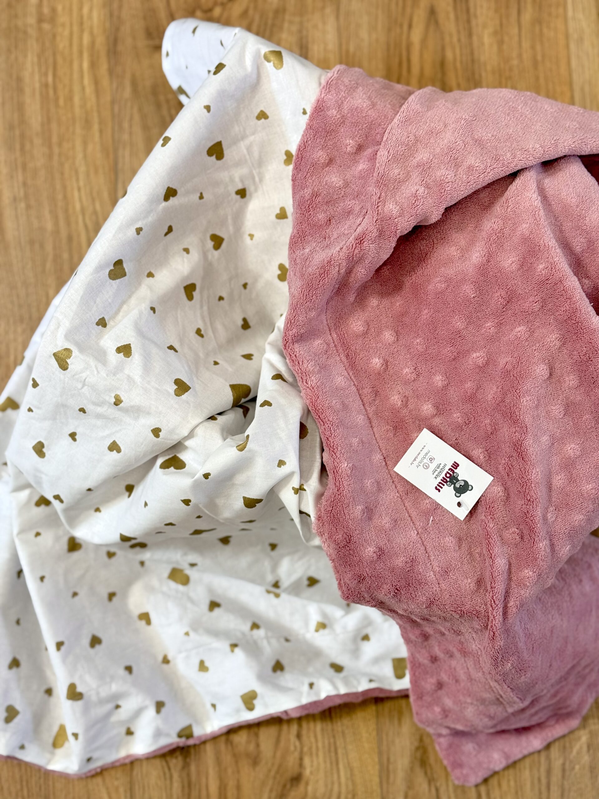 Kombinirana dekica – minky roza- tkanina srca